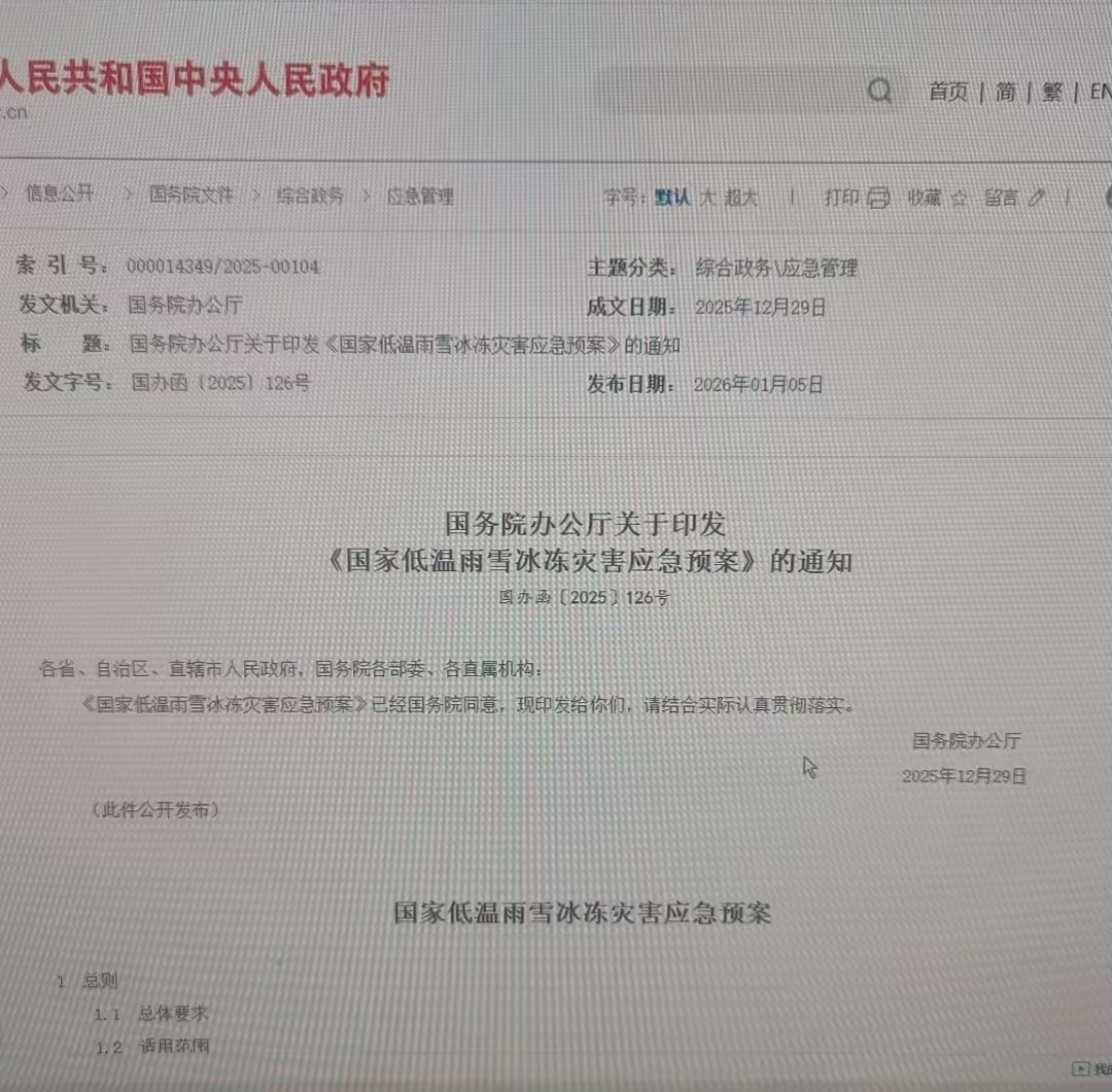 《国家低温雨雪冰冻灾害应急预案》的通知