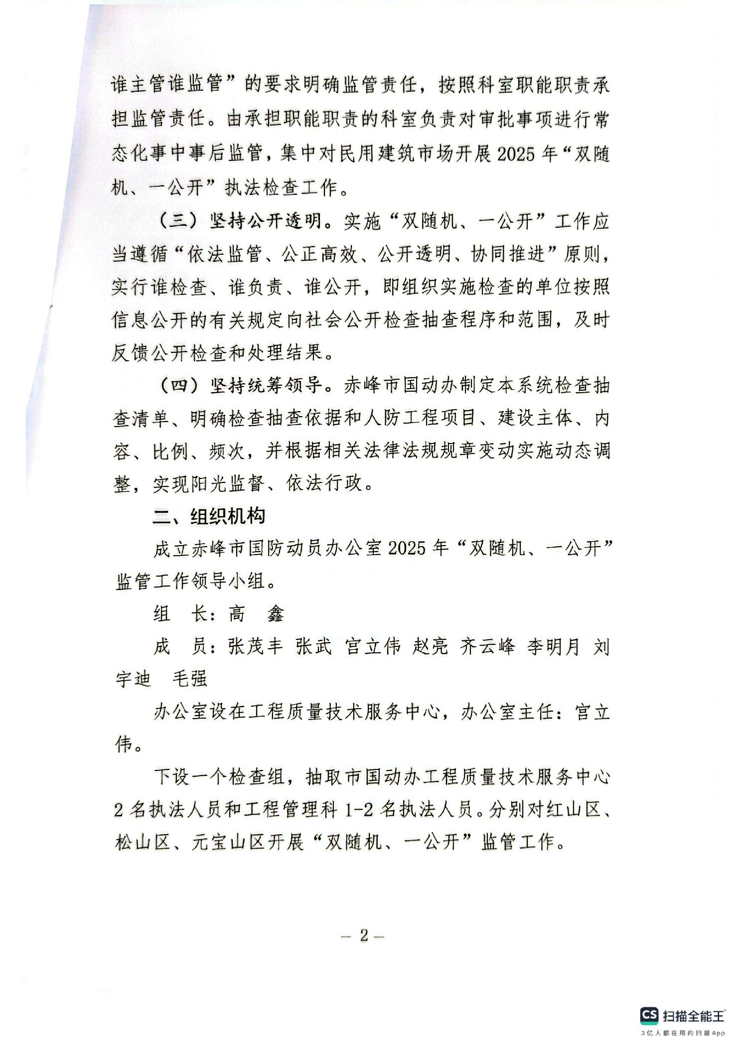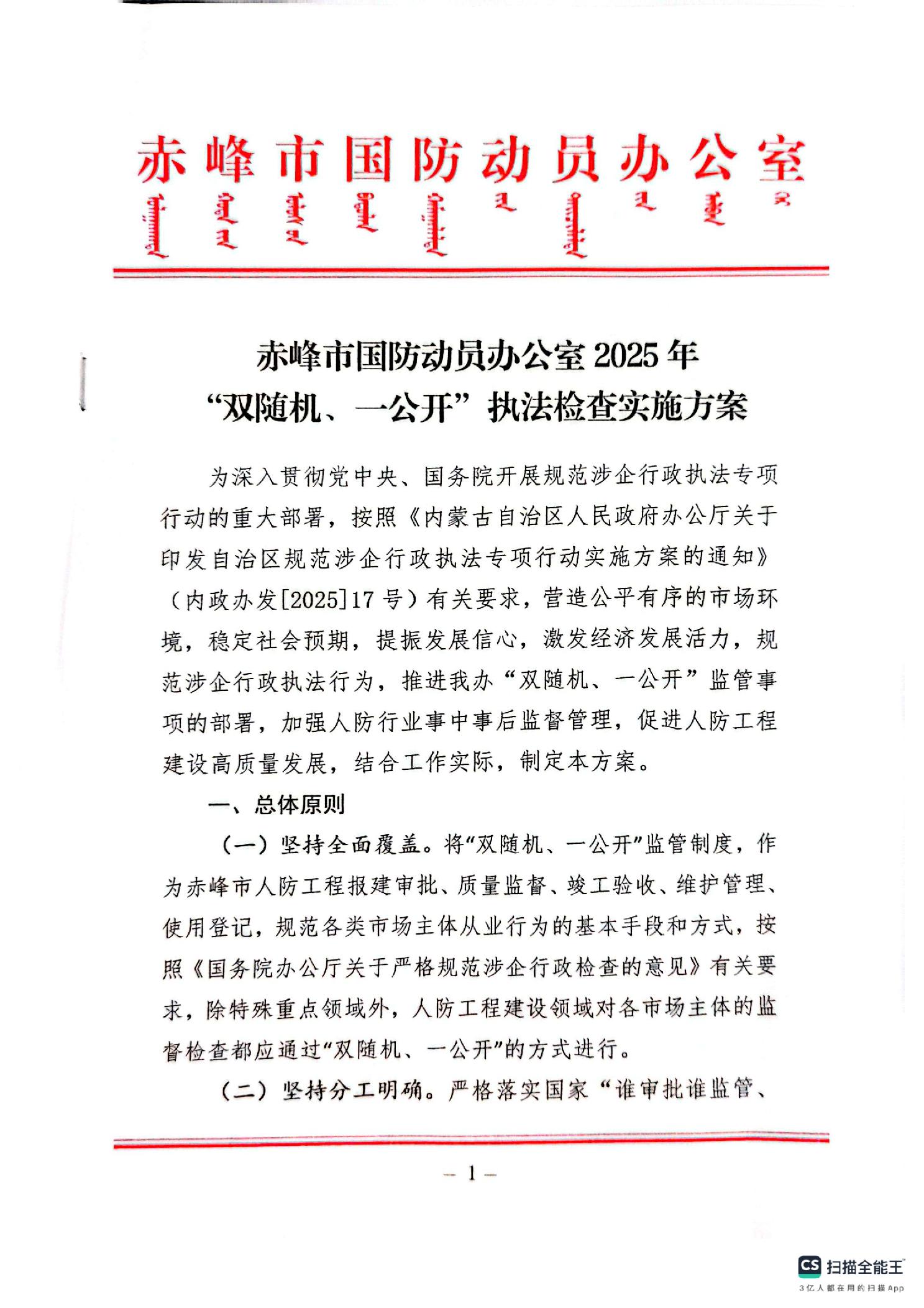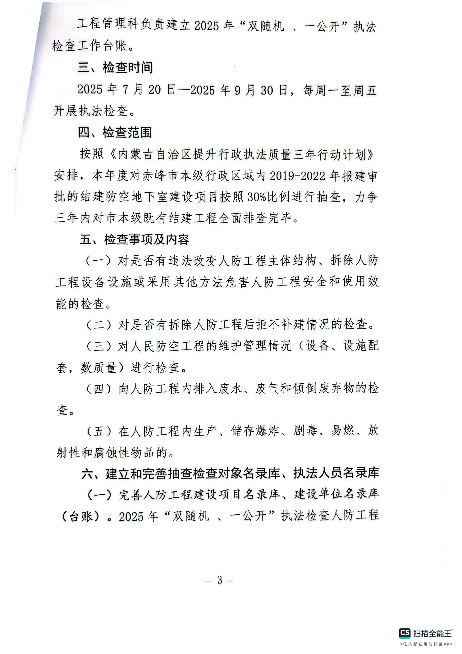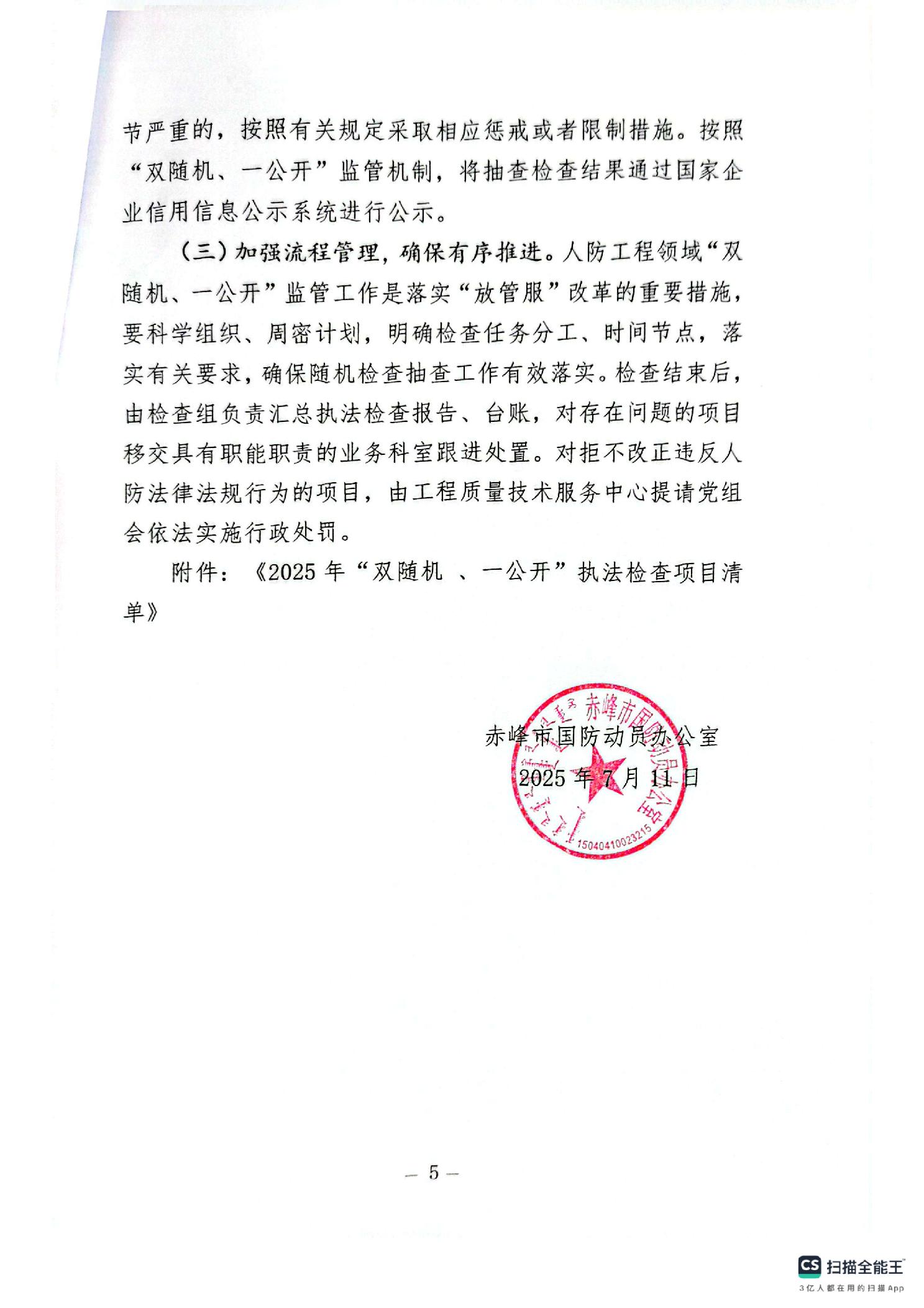 赤峰市国防动员办公室2025年“双随机、一公开”执法检查实施方案
